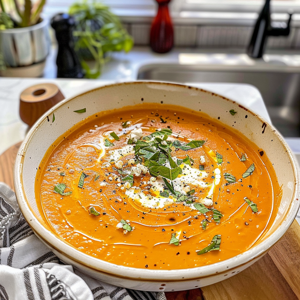 - This creamy feta and roasted red pepper soup is a delightful blend of flavors that warms the soul