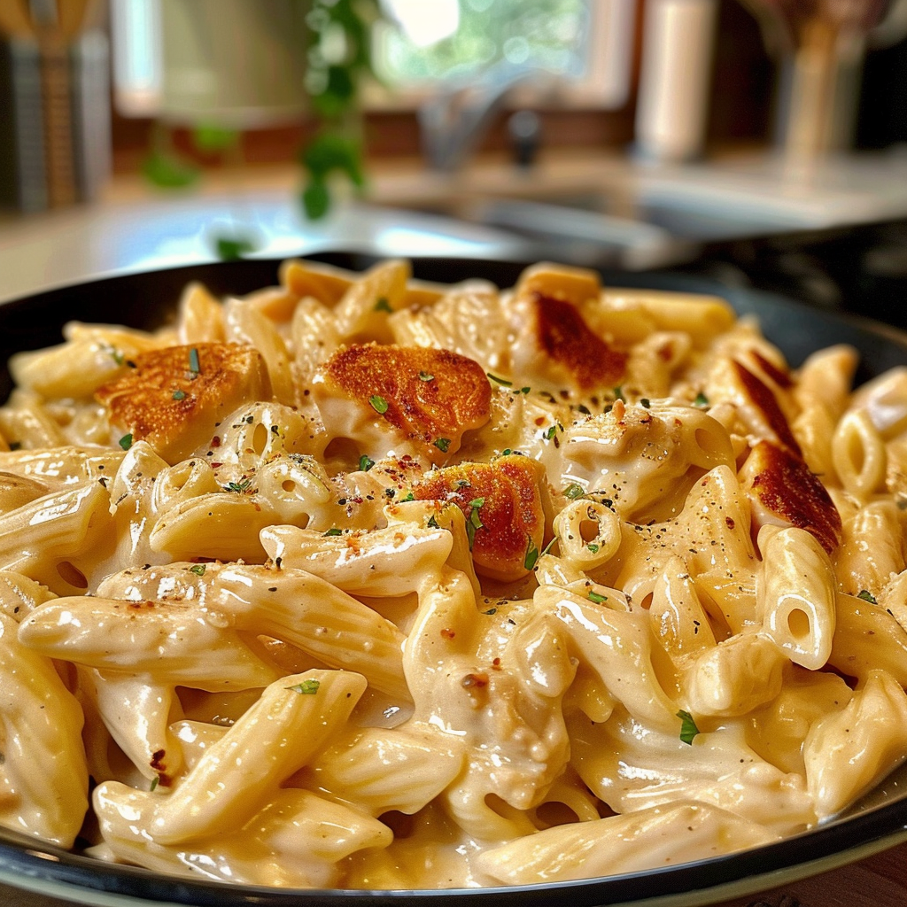 Add Pasta to Sauce: Gently fold the cooked pasta into the creamy sauce. Make sure every piece is luxuriously coated in that cheesy goodness. For more inspiration, check out this Cheesy Mushroom Chicken Alfredo Lasagna recipe.