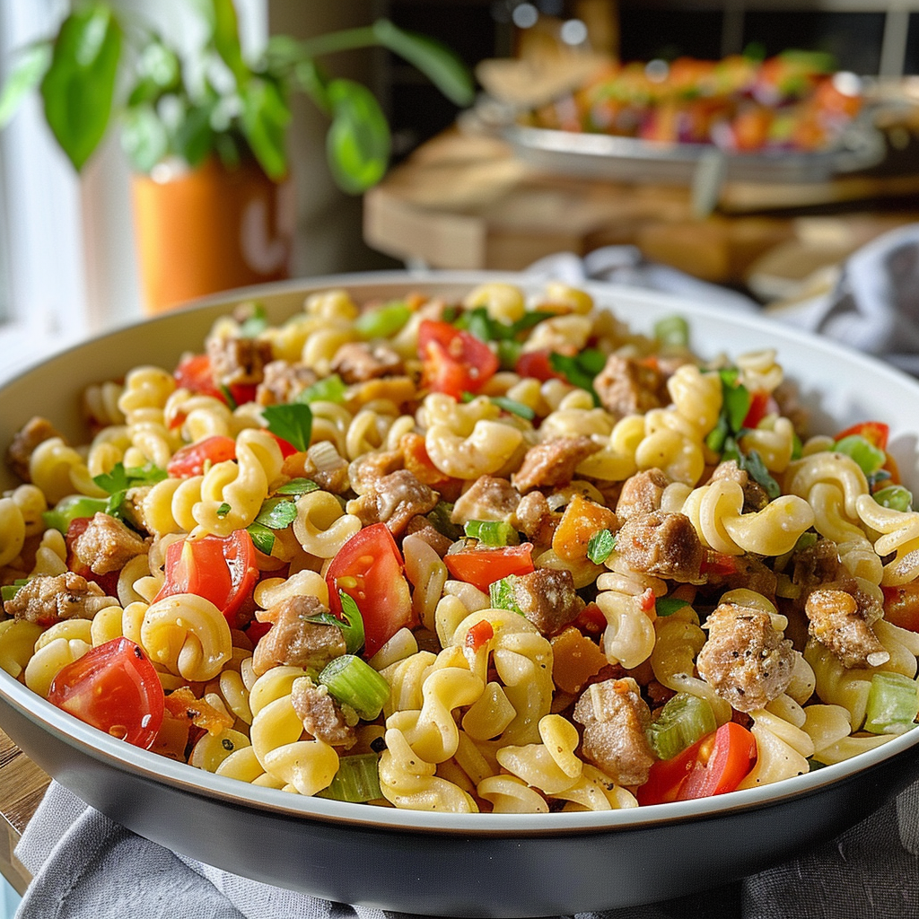 Experience the delightful fusion of nostalgic flavors with this Big Mac Pasta Salad. Crunchy fresh veggies, seasoned ground beef, and creamy Thousand Island dressing come together to create a vibrant dish that’s perfect for any gathering. Easy to prepare and incredibly satisfying, this unique salad will impress your friends at picnics or BBQs and is sure to become a family favorite.