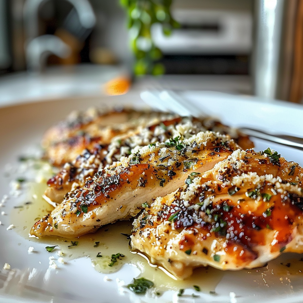 Add the Cheese!: Once cooked through, sprinkle generous amounts of grated Parmesan cheese over each breast. Allow it to melt slightly—trust me; this will make you weak in the knees.