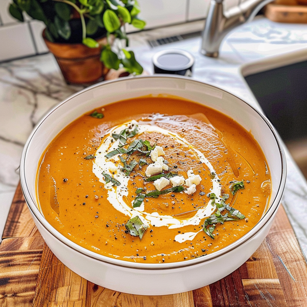 There’s something magical about a warm bowl of Creamy Feta and Roasted Red Pepper Soup on a chilly day. Picture this: the aroma of roasted red peppers wafts through your kitchen, mingling with the tangy scent of creamy feta cheese. Roasted Tomato Basil Soup Your taste buds tingle in anticipation as you imagine that first spoonful—smooth, rich, and oh-so-satisfying.