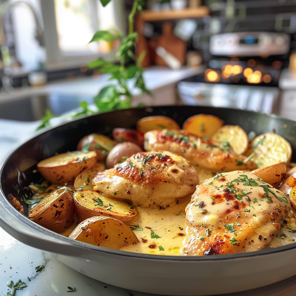 - This creamy garlic chicken & roasted potatoes recipe is a crowd-pleaser