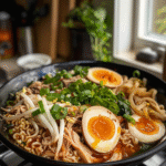 Store leftover ramen in an airtight container in the fridge for up to three days. Reheat gently on the stove or microwave, adding a splash of broth if needed.