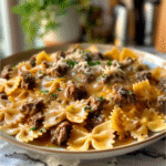 Indulge in the comforting embrace of Garlic Butter Bowtie Pasta with Beef—a delightful dish that combines tender bowtie pasta, juicy ground beef, and aromatic garlic in a rich butter sauce. Perfect for cozy evenings or impressing friends, this recipe serves up an explosion of flavors that transforms any meal into a memorable occasion.