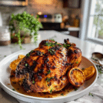 Start by marinating the chicken in an orange sauce for at least an hour. Roast it in a preheated oven at 400°F for crispy skin and tender meat.