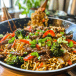 Beef Ramen Stir Fry is a delightful dish that combines tender beef, colorful vegetables, and savory noodles in a flavorful sauce. Perfect for busy weeknights, this quick recipe brings comfort and satisfaction in every bite. With its vibrant colors and irresistible aroma, it’s sure to become a family favorite!